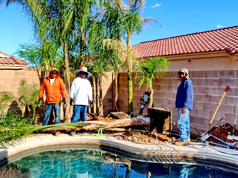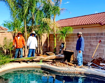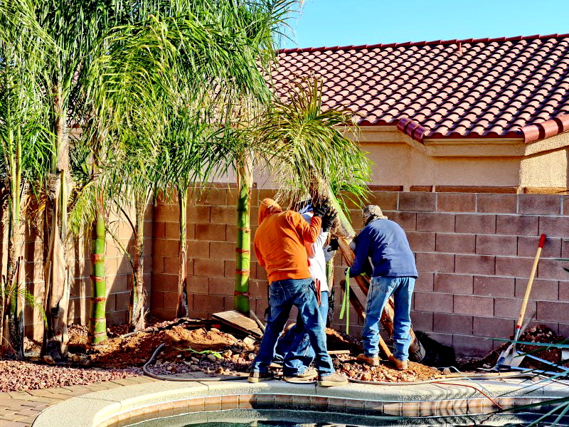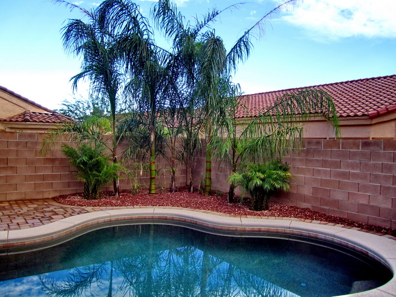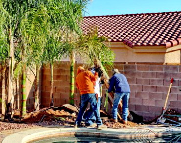 Planting beautiful Queen palms, now the back yard feels like it's tropical.